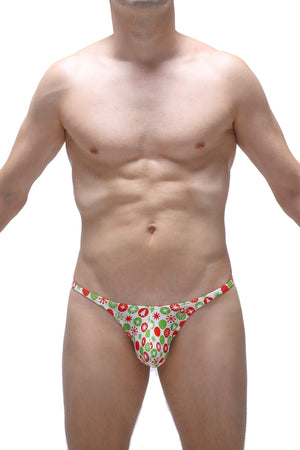 Weißer Tanga mit Weihnachtsdruck, hübsche Vordertasche, dünne Seiten. Sehr dehnbares Modal.