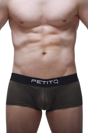 Dark green boxer shorts in soft modal. Elastics in the back like a jockstrap to have a nice bum. Black waistband.