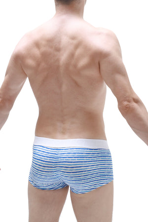 Blue and white striped shorts with a low waist, short on the thighs, with a large front pocket and seamless to ensure maximum comfort.
