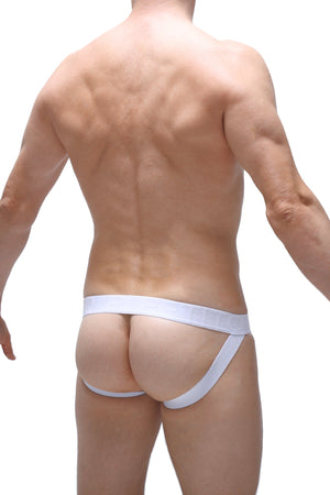 White jockstrap with Christmas print and seamless front pouch. Matching white waistband.