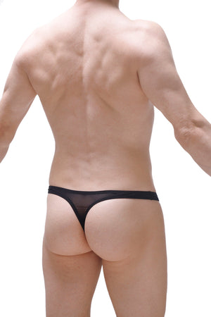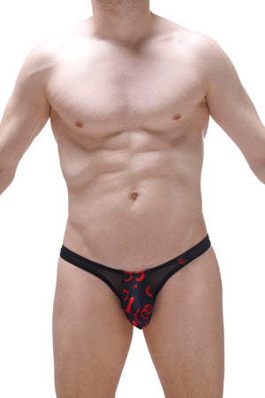 The Andlau thong is a transparent thong with just a stripe on the pouch to hide the genitals. On this one, the mesh is black and the print is super daring with its SM patterns.