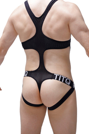 Un harnais pour le torse, un body string, un jockstrap tout en même temps pour un dessous pour homme ultra érotique. Matière ajourée légèrement transparente.